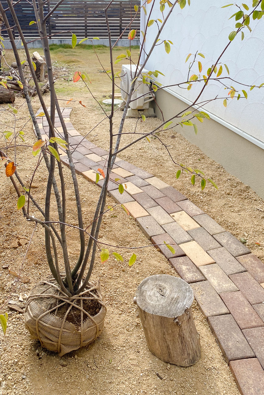 レンガの小道をくねくね道にするのをおすすめする3つ目の理由は、木を植えられることです。