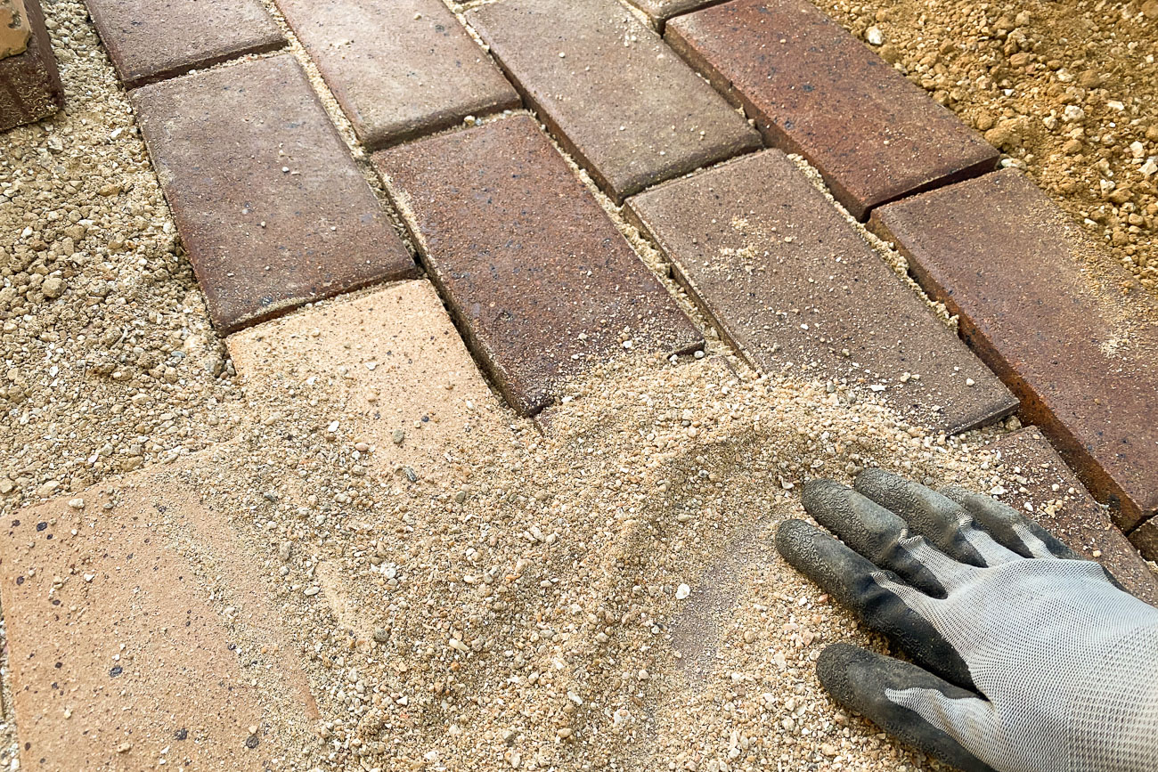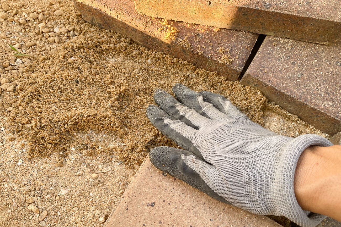 レンガとレンガの間に隙間があるので、ここに砂を埋めていきます。