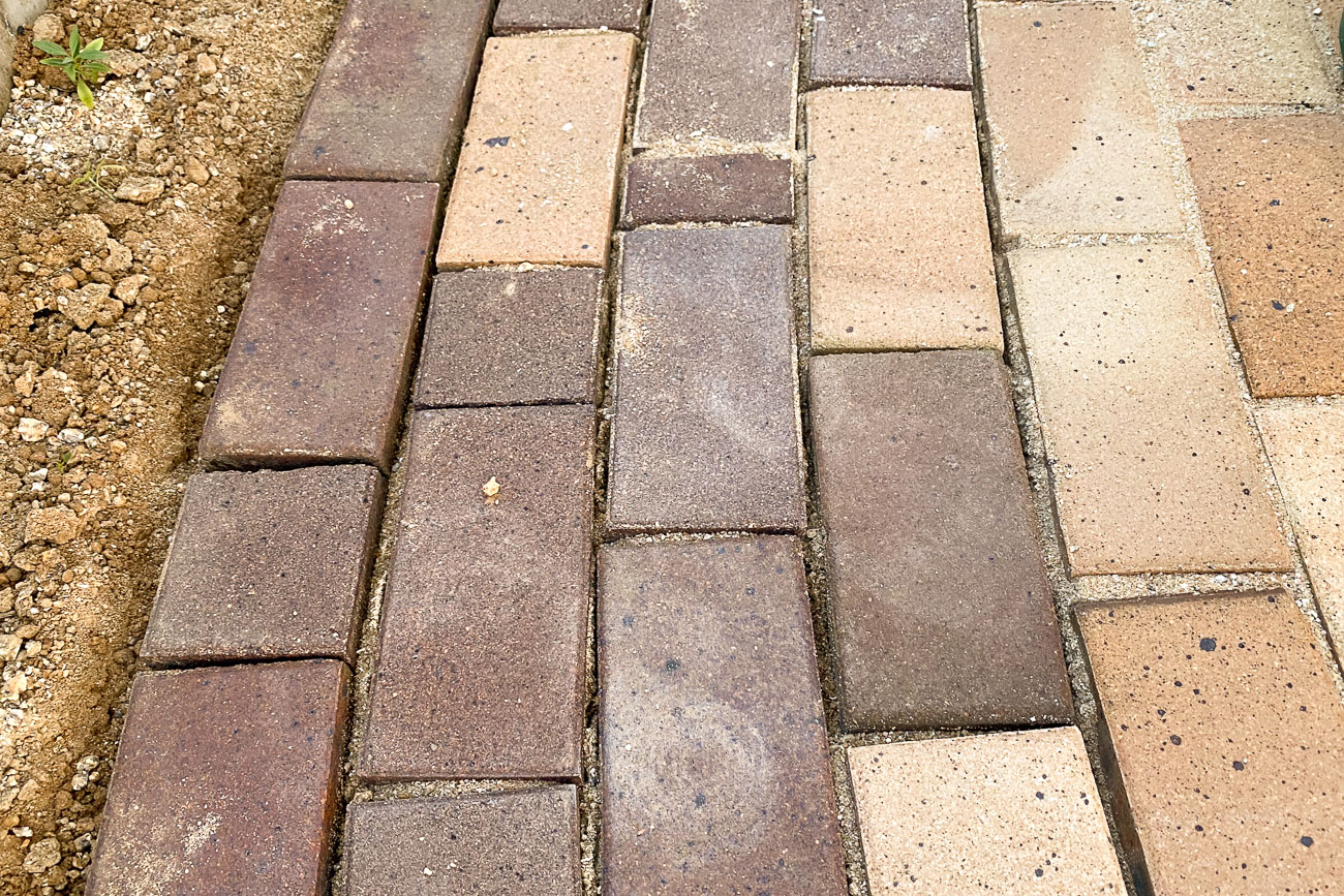 レンガの小道を作るときに気をつけたことの3つ目は、色が不自然にならないことです。